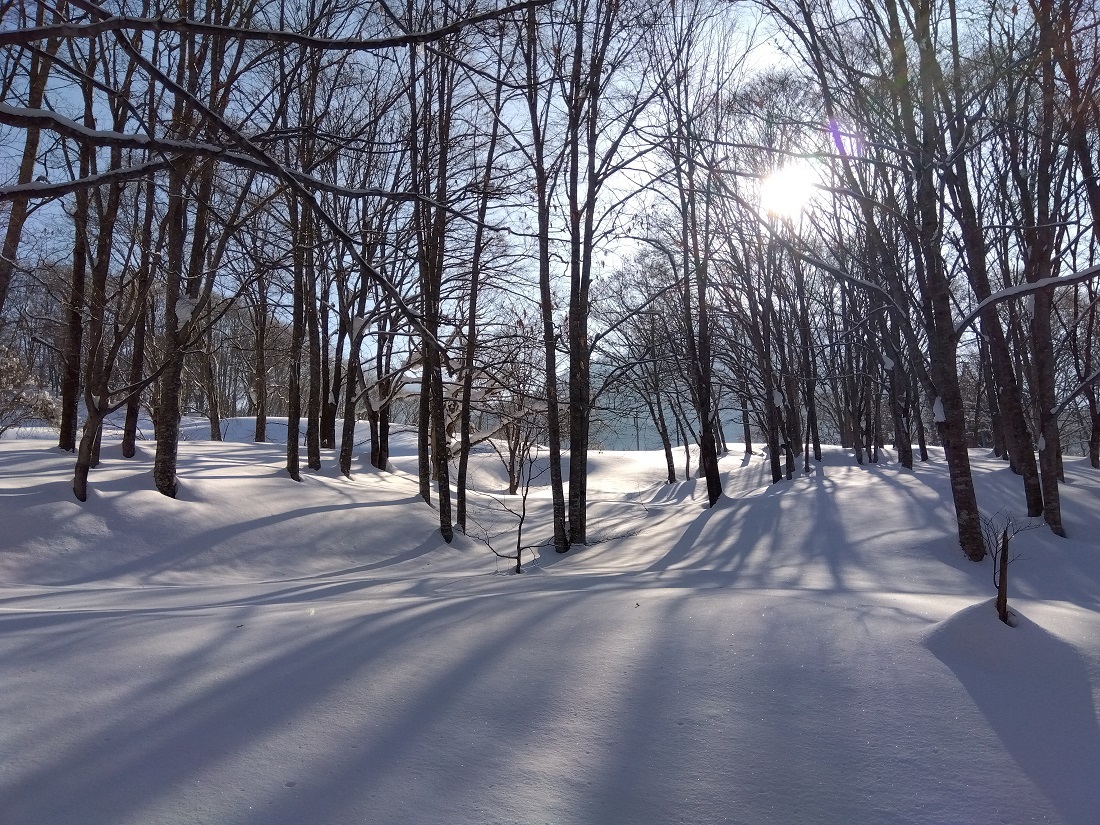 お天気も良い日でしたので、景色を楽しみながらスノーシューハイクで林道を上がっていきます。