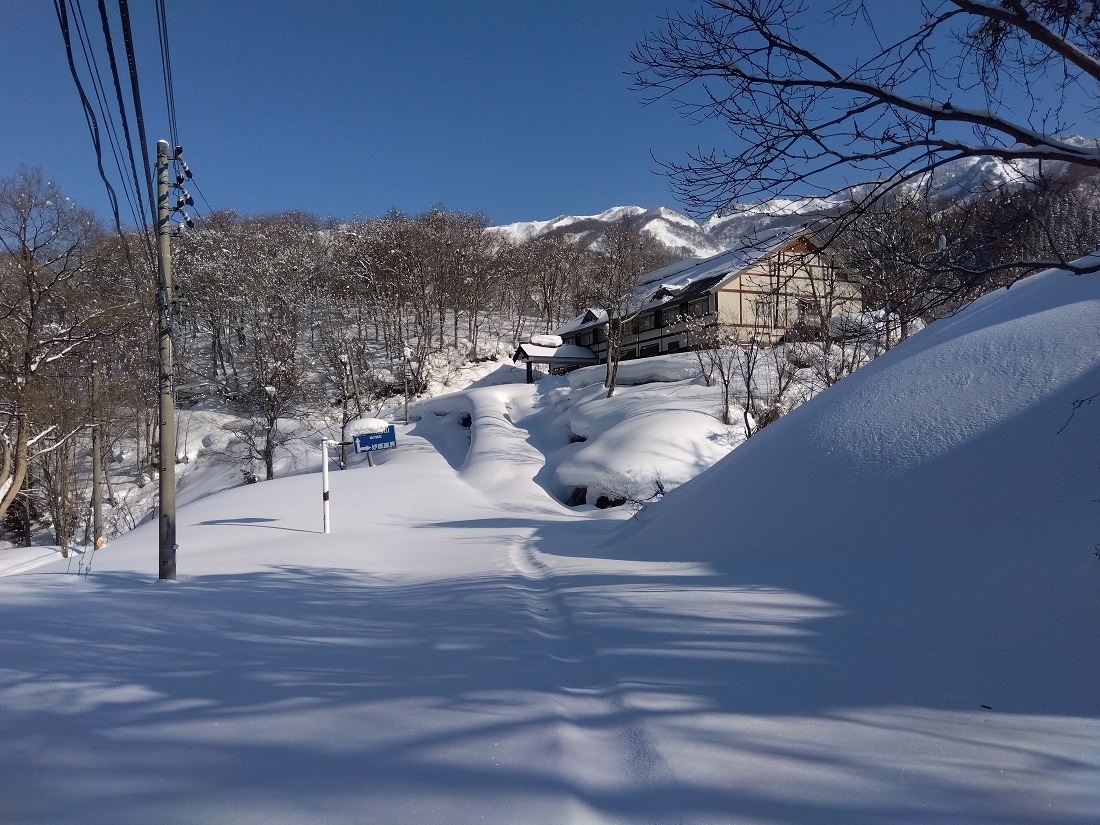 雨飾荘に到着しました! 2m~3mほどで、例年並みの積雪です。