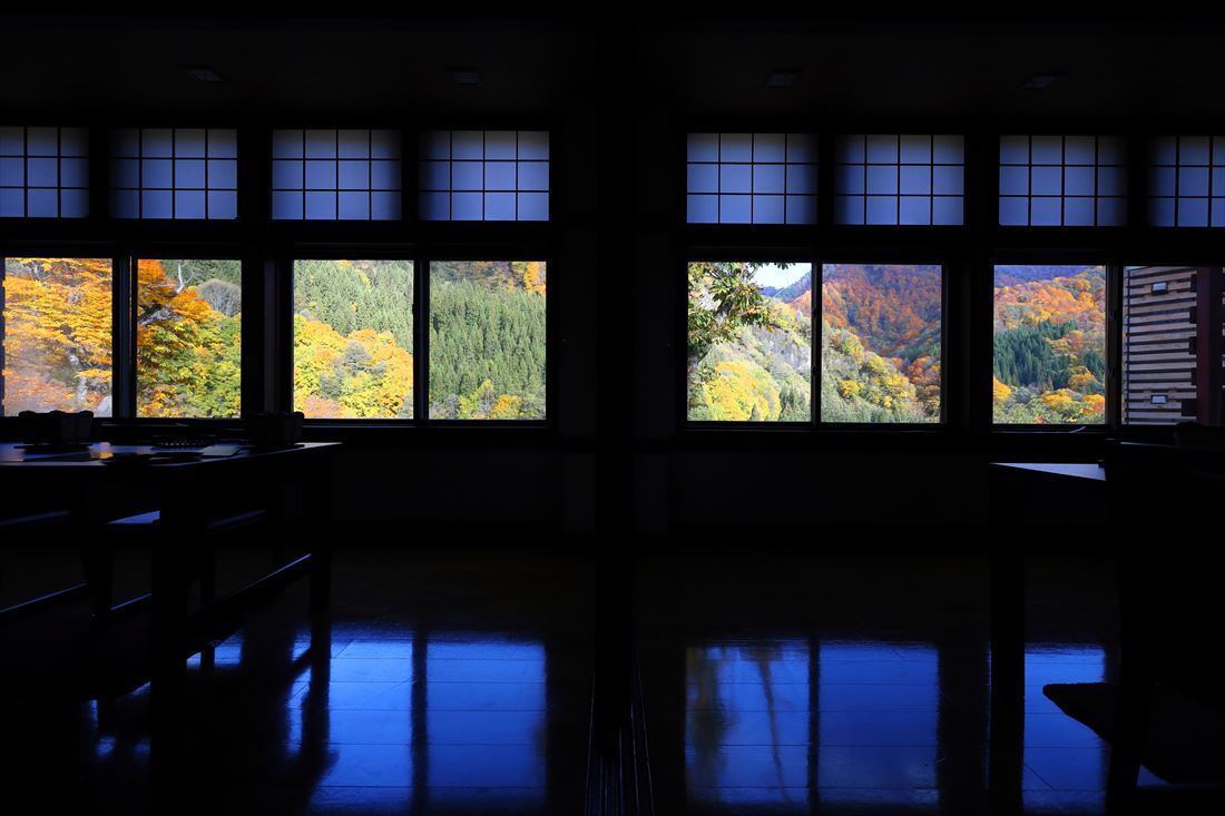 お食事処からは目の前に広がる紅葉が楽しめます。
