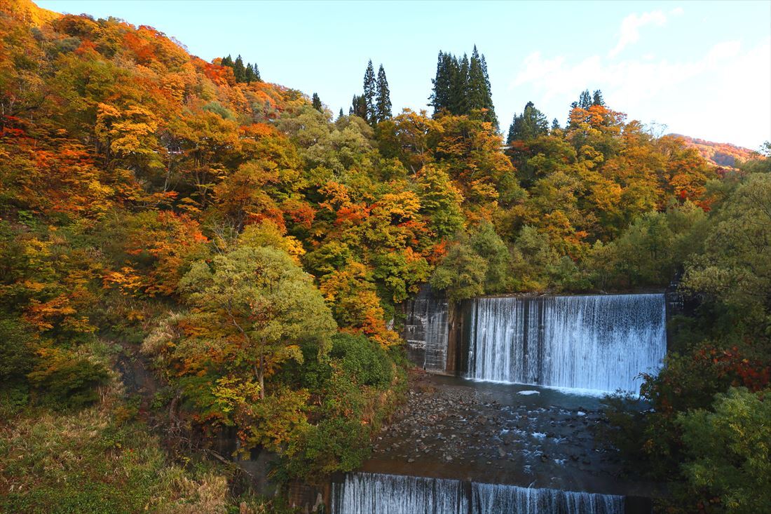 雨飾荘に上がってくる橋からの景色もちょうど色づいています。