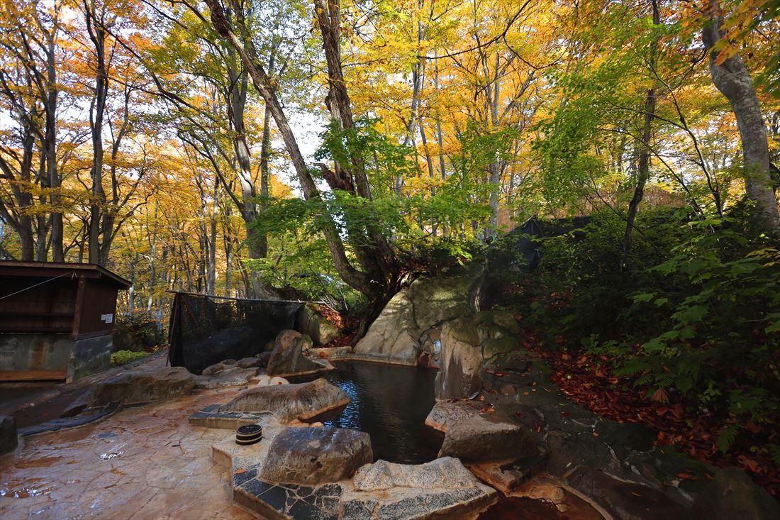 雨飾高原露天風呂も彩り美しい紅葉を眺めながらご入浴を楽しめます。(11/10まで入浴可能です。)