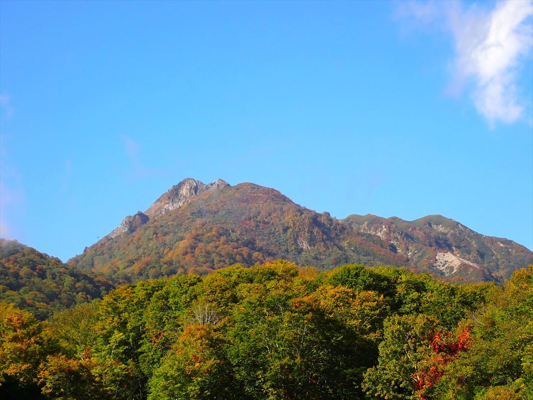 雨飾山も頂上付近から中腹にかけて色づきが増してきたのが分かります。これから10月下旬にかけて、さらに鮮やかな紅葉になりそうです。