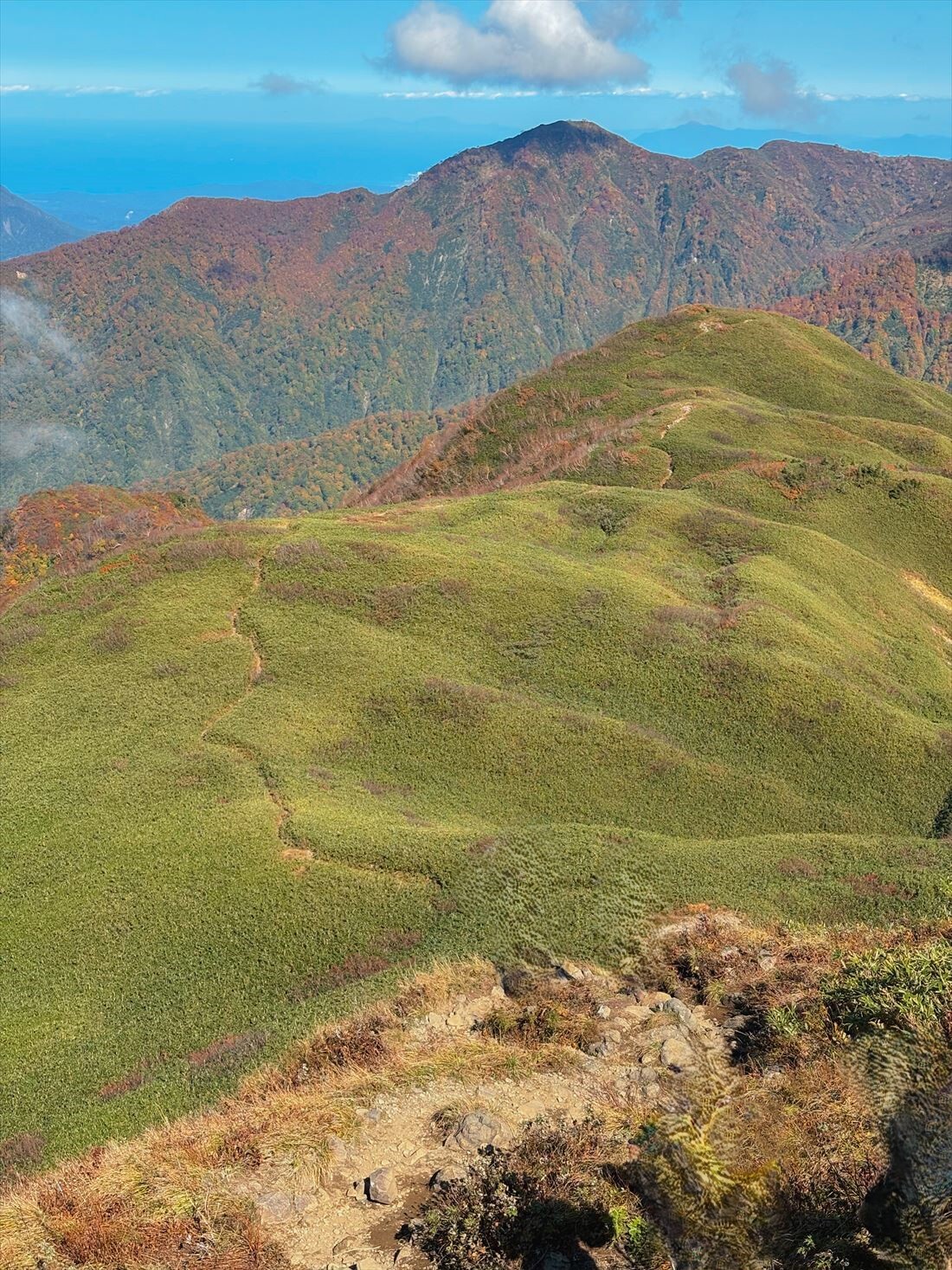 登山道は日ごとに彩りを増しています。まるで紅葉のトンネルをくぐりぬけるようです!