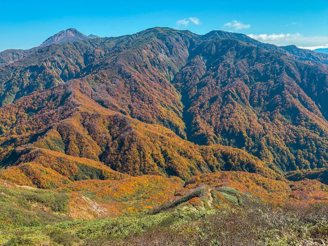 百名山・雨飾山も紅葉のピークを迎えております。