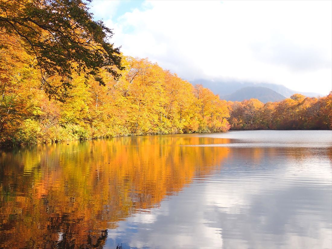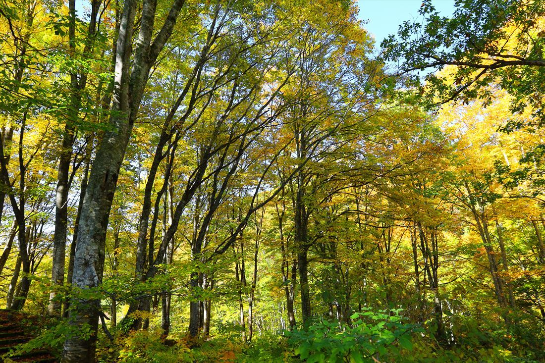 雨飾荘から徒歩5分の遊歩道も、ブナの紅葉に彩られています。