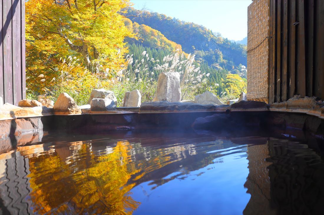 館内の露天風呂からは妙高方面の紅葉が楽しめます。