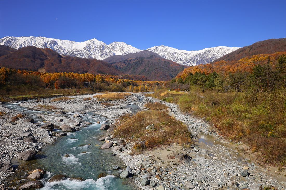 白馬大橋からは目の前に白馬三山を眺めることができます。絶好の撮影スポットですね。