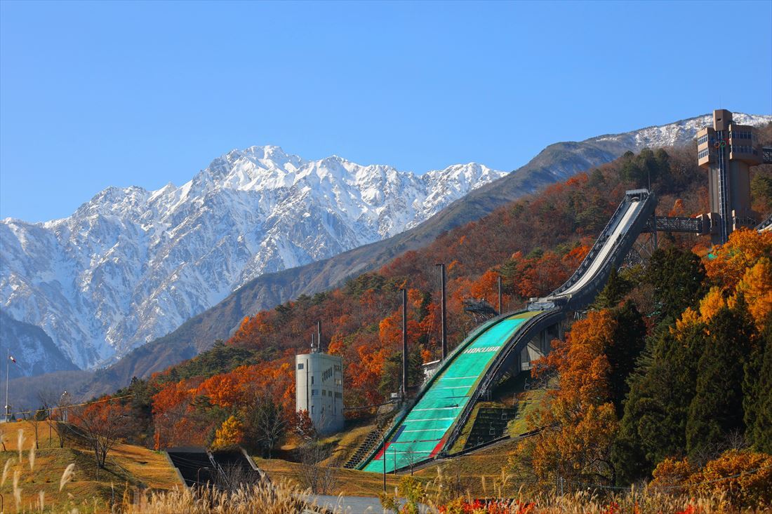 長野オリンピックのジャンプ競技が行われたジャンプ台では選手と同じリフトで上部に上がることもできます。