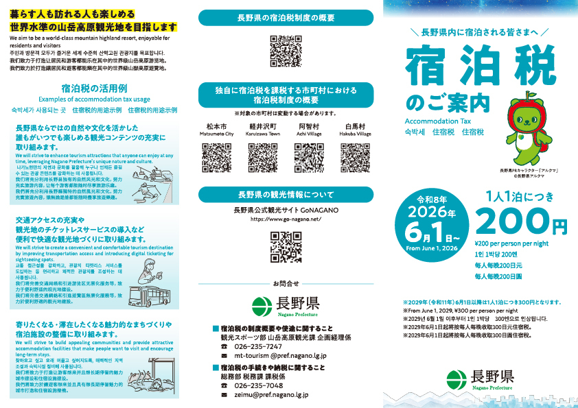 2026年6月1日のご宿泊より、長野県において宿泊税が導入されることになりました。